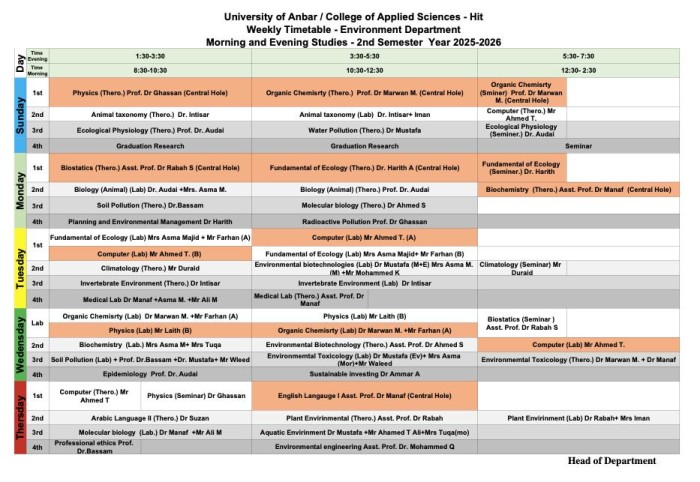 إعلان إلى طلبة المرحلة الأولى في كلية العلوم التطبيقية – هيت بشأن بدء الدوام للفصل الدراسي الثاني وجدول المحاضرات